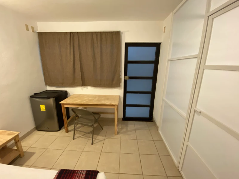 Habitaciones equipadas. 1 ó 2 personas. Baño completo privado. Cocineta y área de lavaderos en área común. Estacionamiento cercano